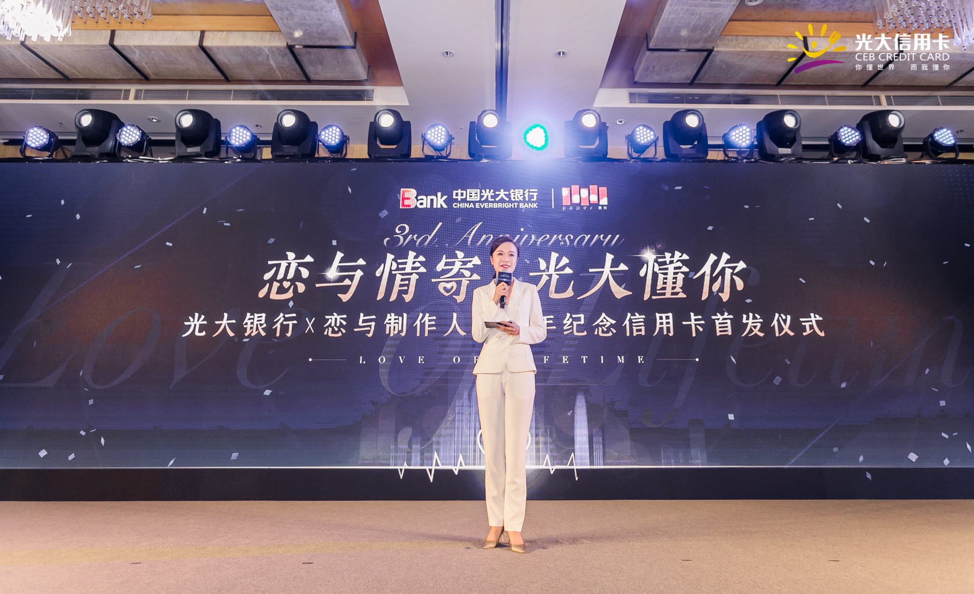 中国光大银行与《恋与制作人》开发公司叠纸网络科技有限公司携手,在苏州万怡酒店举行“光大银行*恋与制作人三周年纪念”信用卡首发仪式,正式在全国范围内推出以“恋与情寄 光大懂你”为主题的“光大恋与制作人”主题信用卡。