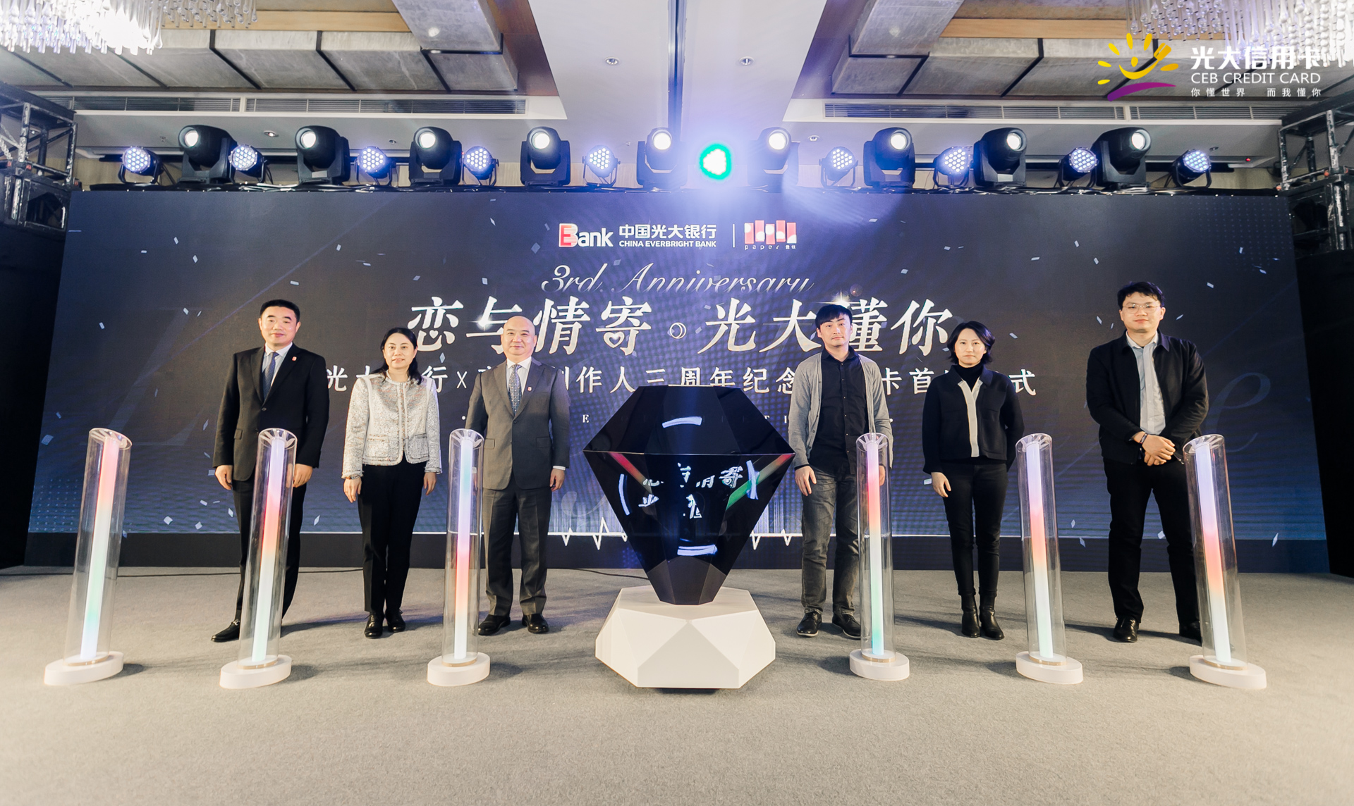 中国光大银行与《恋与制作人》开发公司叠纸网络科技有限公司携手,在苏州万怡酒店举行“光大银行*恋与制作人三周年纪念”信用卡首发仪式,正式在全国范围内推出以“恋与情寄 光大懂你”为主题的“光大恋与制作人”主题信用卡。